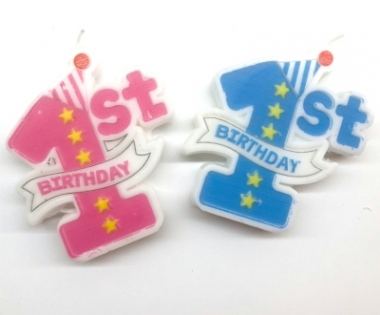 My First Birthday Party! Say it with this numeric candle! Available in Pink or Blue....