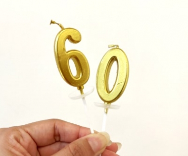 Classic gold number candle for your birthday celebration! Each number is approximately 4.5cm in height with a wax collector, and stick pick at the base...