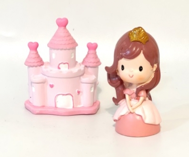 Sweet little princess figurines and castle for your DIY cake decoration! Perfect as ornament for your baby's room decor too! Est. 8cm height. Does not come in gift box....