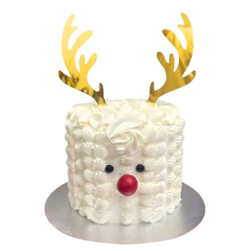 December’s Design of Month: A charming reindeer design cake crafted in handpiped ivory white freshcream rosettes, giving the cake a soft, snowy elegance. Topped with gl...