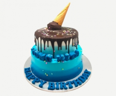 Someone dropped their ice-cream?? A playful blue ombre drip-cake design. Choose from a wide range of cake flavours. Prefer to have it as a 1-tier Cake (Minimum 0.5KG)? Or for further customisation request, please contact 6457 6159. Collection for cakes only available at AMK Ave 10. Delivery services available upon check-out, subjected to availability.