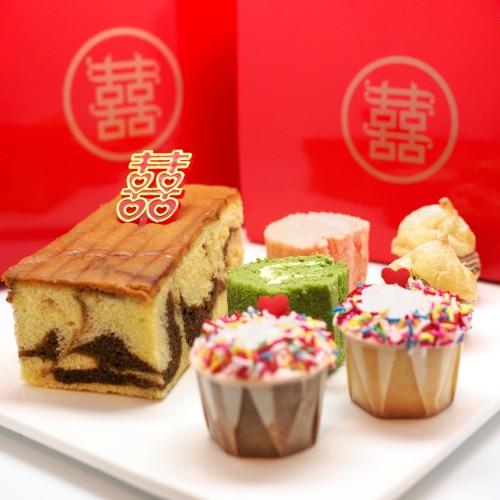 Includes 1 x Marble Butter Cake Bar, 2 x Butter Cupcakes, 2 x Mini Swiss Rolls, 2 x Mini Choux Puffs. Minimum 12 Sets. NOTE: all cakes and tartlets needs to be refrigerated. Alternatively, you can keep in air-conditioned environment for up to 3-4hours. For urgent order of less than 7days notice, or if you require less than the stated minimum quantity, please contact us at 64576159 or enquiries@pgcake.com for assistance.