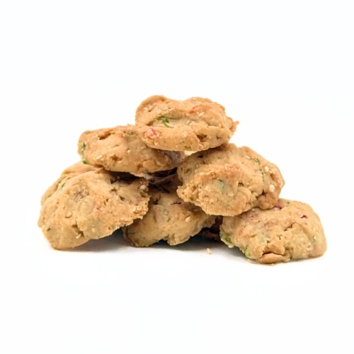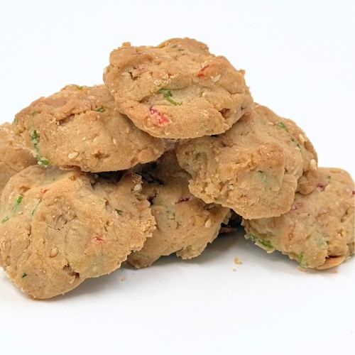 Inspired by the vibrant flavours of a classic Chinese New Year Lo Hei, these festive cookies bring together sweet and tangy plum sauce, zesty lime, aromatic five-spice, kumquat, and nutty white sesame. Finished with green and red preserved melon strips, each bite is a joyful toss of flavour, symbolising prosperity, abundance, and good fortune. :::::::: Bottle of est. 340gm. Collection available from 15 Jan to 15 Feb '26 ::::::::