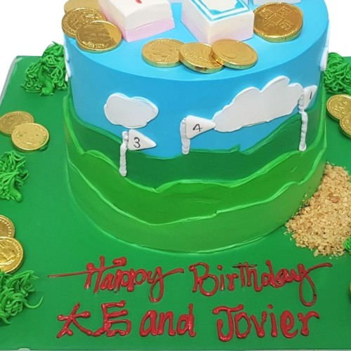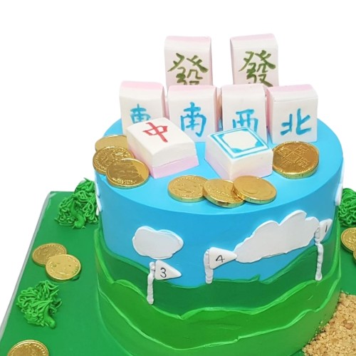A special joint celebration? Or looking at a cake for the one with many passion? Get this mahjong and golf theme cake for a one-stone-two-birds solution! This is a tumbler shaped cake (2 cakes stacked up to make it taller). Choose from a wide range of cake flavours (top-up to exquisite flavours such as Passion Pink Guava, Rambutan Osmanthus Yogurt, Strawberry Milk-Shake Panna Cotta, Grapefruit Oolong, Yakult Soju, etc available, contact our team for assistance). For further customisation request, please contact 6457 6159. Delivery service available at $18 per trip, waived for orders above $280. For urgent order of less than required notice period, please contact us at 64576159 or enquiries@pgcake.com for assistance.
