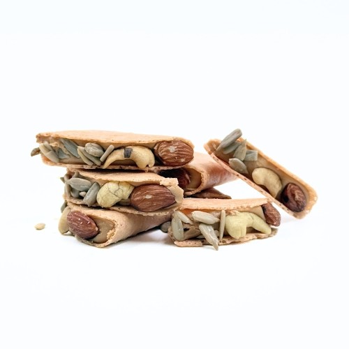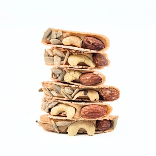 Delicately crisp folded love letters are generously filled with creamy peanut butter and studded with an assortment of nuts. Fragrant and richly nutty, each bite delivers a satisfying crunch followed by a smooth, comforting finish. :::::::: Bottle of est. 20pcs. Collection available from 15 Jan to 15 Feb '26 ::::::::