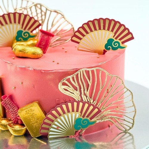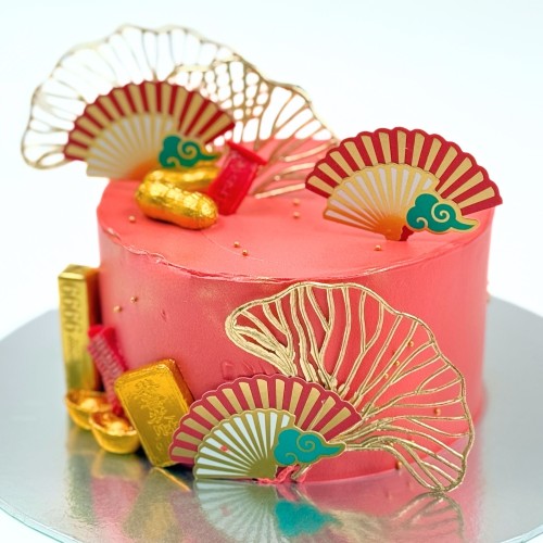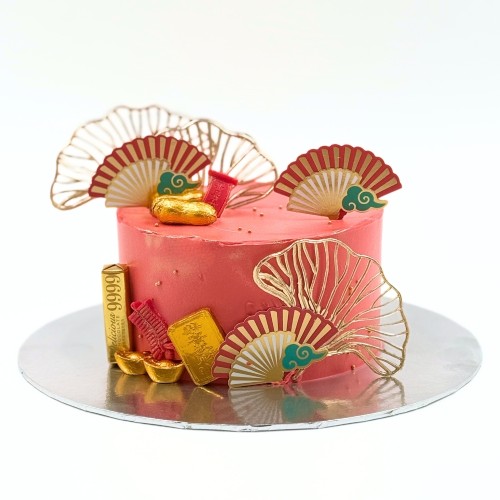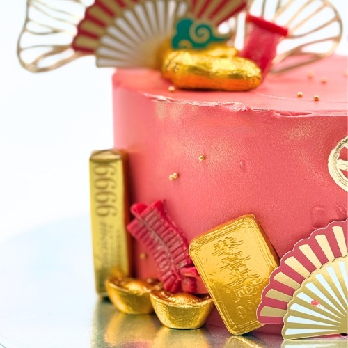 Bold in crimson and rich in symbolism, Ruby Fortune design cake is a celebration of prosperity, abundance, and elegant tradition. Finished in a subtle red freshcream, this refined cake is adorned with chocolate gold coins, ingots, and nuggets—timeless emblems of wealth and good fortune for the new year. Delicate oriental fan and toppers in shimmering gold adds 3D and grace, evoking harmony, renewal, and auspicious beginnings. Choose from a wide range of cake flavours (top-up to exquisite flavours such as Passion Pink Guava, Rambutan Osmanthus Yogurt, Strawberry Milk-Shake Panna Cotta, Grapefruit Oolong, Yakult Soju, etc available, contact our team for assistance). For further customisation request, please contact 6457 6159. Delivery service available at $18 per trip, waived for orders above $280. For urgent order of less than required notice period, please contact us at 64576159 or enquiries@pgcake.com for assistance.