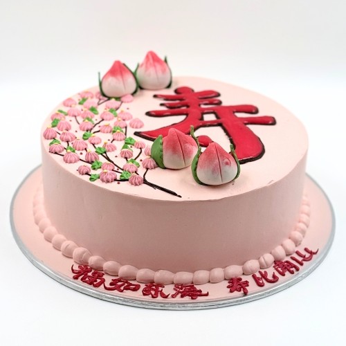 Cherry Blossom with icing Shou Taos design cake! Choose from a wide range of cake flavours (top-up to exquisite flavours such as Passion Pink Guava, Rambutan Osmanthus Yogurt, Strawberry Milk-Shake Panna Cotta, Grapefruit Oolong, Yakult Soju, etc available, contact our team for assistance). For further customisation request, please contact 6457 6159. Delivery service available at $18 per trip, waived for orders above $280. For urgent order of less than required notice period, please contact us at 64576159 or enquiries@pgcake.com for assistance.