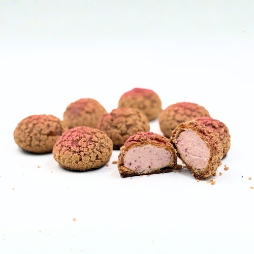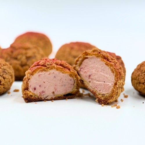Comes in a box of 8pcs Choux Puff. A delightful balance of sweet, savoury and tangy, this choux puff is filled with luscious strawberry cream blended with smooth cream cheese. Light, airy, and refreshingly indulgent, each bite offers a burst of fruity brightness with a creamy finish.