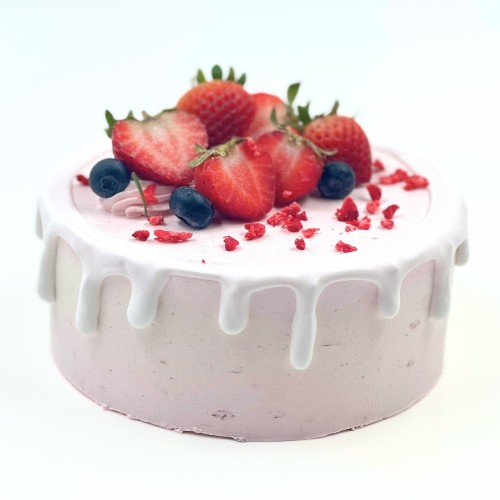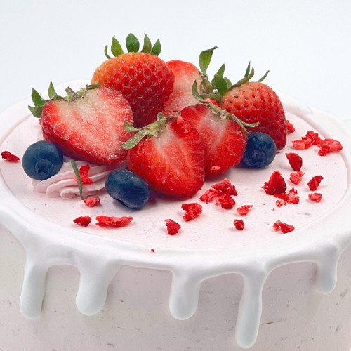 Pretty in pink strawberry sponge filled with strawberry milkshake cream, strawberry milk panna cotta cubes and strawberry bits. A light and berry delicious cake for a hot tropical day! For urgent order of less than 3days notice, please contact us at 64576159 or enquiries@pgcake.com for assistance.