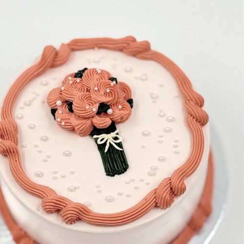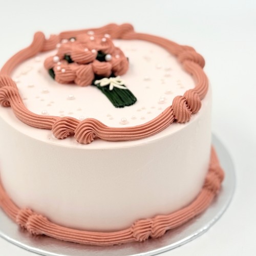 Delicately crafted for the queen of our hearts, this vintage-style design features elegant freshcream piping of detailing and a mini bouquet of flowers at its center — an edible tribute to love, beauty, and timeless grace! Choose from a wide range of cake flavours (top-up to exquisite flavours such as Passion Pink Guava, Rambutan Osmanthus Yogurt, Strawberry Milk-Shake Panna Cotta, Grapefruit Oolong, Yakult Soju, etc available, contact our team for assistance). For further customisation request, please contact 6457 6159. Delivery service available at $18 per trip, waived for orders above $280. For urgent order of less than required notice period, please contact us at 64576159 or enquiries@pgcake.com for assistance.