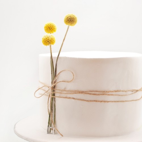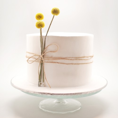 A simple yet elegant tumbler cake with some sunshine yellow Craspedia flowers for those who are looking to have a petite cake for an intimate celebration. NOTE: Fresh floras are seasonable and may be subjected to changes and stock availability. Further customisation options (e.g. Number of tiers, colours, finishes) and priority delivery available, subjected to availability. Please email us at enquiries@pgcake.com for more details.