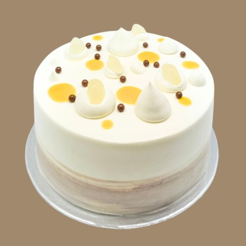 Experience a tropical delight with our Mango Passionfruit Cake. Fresh mango bits and luscious passionfruit cream are layered over our classic vanilla sponge cake, creatin...