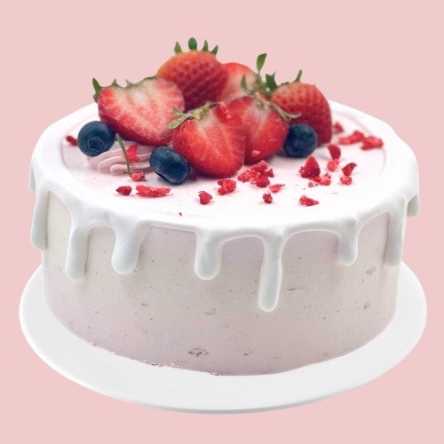 Pretty in pink strawberry sponge filled with strawberry milkshake cream, strawberry milk panna cotta cubes and strawberry bits. A light and berry delicious cake for a ho...